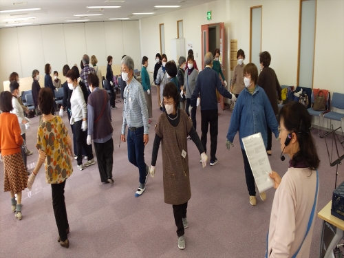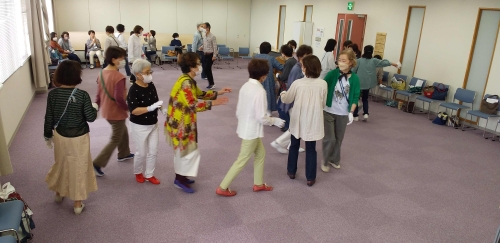 令和7年05月 第1回 メインストリ-ム(MS) 特別例会の模様です。標準隊形での「MAINSTREAM PROGRAM」の一通り「Cloverleaf」~「Recycle」までの講習でした。参加者は自分の「不得手」な動作がどれか気付いたようです。{コーラーは一人なので大変です。}